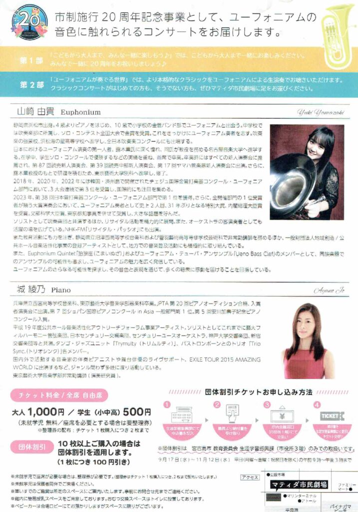 今回は宮古島市20周年事業コンサートのお知らせをしたいと思います。